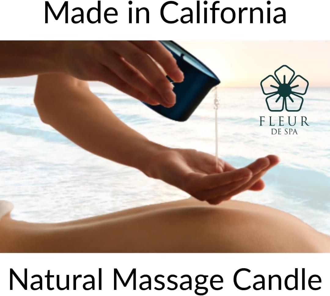 imageFLEUR DE SPA Massage Oil Candle  6oz with Pour Spout  Made in USA  All Natural Coconut ampamp Soy Blend  Melts to Warm Alluring ampamp Hydrating Body Oil  Perfect Spa ampamp Gift Candle Sweet DreamsIsland Hibiscus