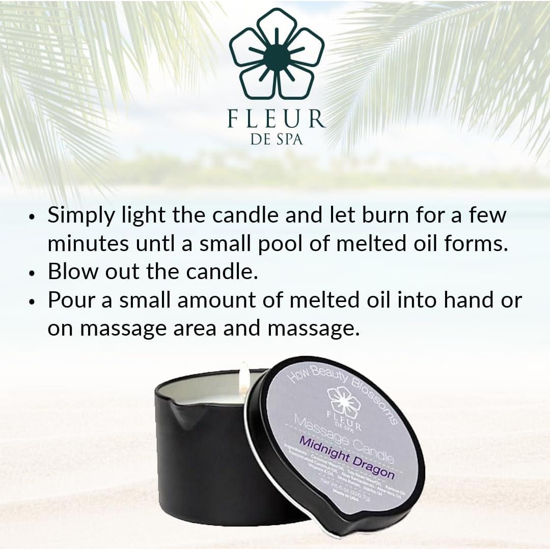 FLEUR DE SPA Massage Oil Candle – 6oz with Pour Spout – Made in USA – All Natural Coconut & Soy Blend – Melts to Warm, Alluring & Hydrating Body Oil – Perfect Spa & Gift Candle (Sweet Dreams)(Island Hibiscus)